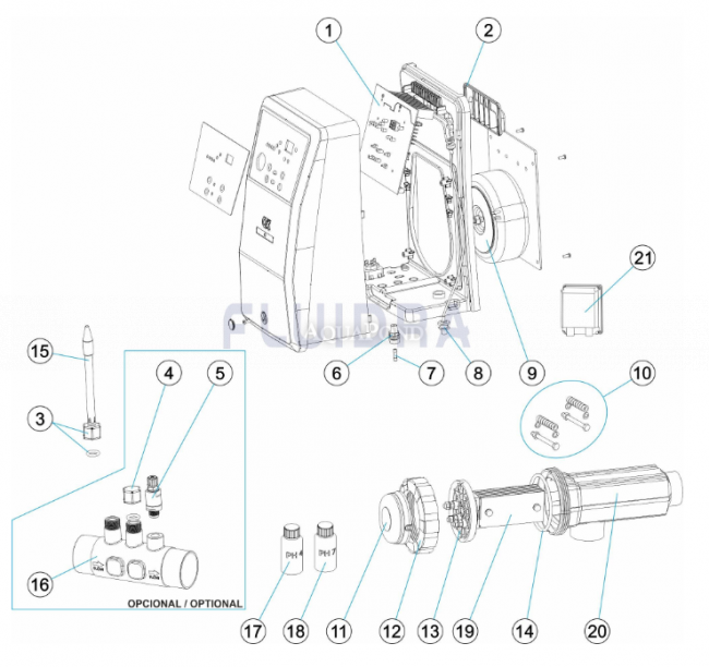 Náhradné diely pre Astralpool Solinátor CTX Go Salt 21 pre bazény do 100 m3, s pH sondou a čerpadlom na dávkovanie pH mínus