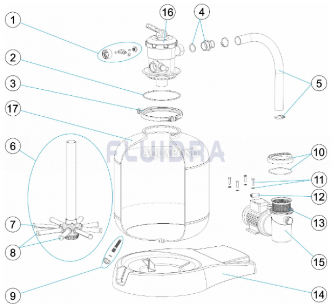Náhradné diely pre filtračné zariadenie SkyPool 500 na palete s čerpadlom P-XPERT 10, 9 m3 / h, s päťcestným ventilom, s prepojovacím potrub