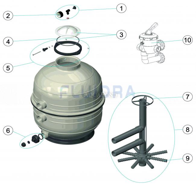 Náhradné diely pre filtračnú nádobu MIDI 500, šesťcestný ventil, český popis na šesťcestný ventil
