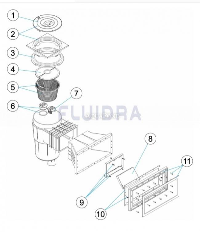 Náhradné diely pre skimmer 17,5 l so širokým hrdlom a štvorcovým vekom - farba antracitová šedá (RAL7016)
