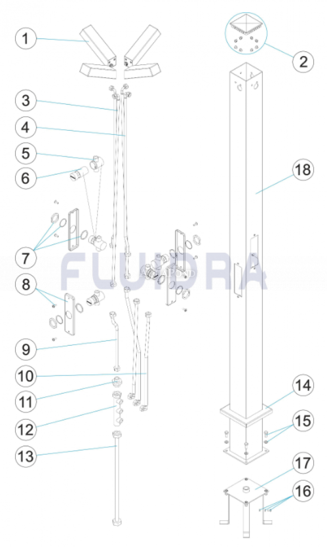 Náhradné diely pre sprchu s 4 kropítkami a 4 automatickými ventilmi