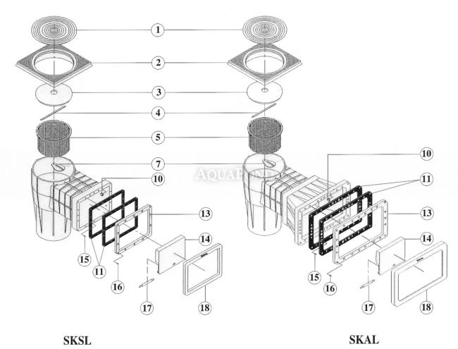 Náhradné diely - Skimmer Hayward Kripsol, sanie 200 mm x 180 mm, s vákuovým kotúčom, pre fóliové bazény