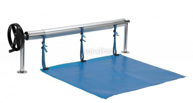 Kompletné navíjacie zariadenie určené na pohodlné navíjanie a odvíjanie solárnej bublinkovej fólie na hladine bazénu. Stojany sú vyrobené z leštenej nerezovej ocele, a teleskopická navíjacia tyč je v prevedení eloxovaného hliníku.  Zariadenie sa umiestňuje na kraj bazéna. Uchytenie solárnej fólie a navíjacej tyče sa vykonáva pomocou pásikov a príchytiek (súčasť dodávky).