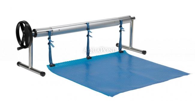 Kompletné navíjacie zariadenie určené na pohodlné navíjanie a odvíjanie solárnej bublinkovej fólie na hladine bazénu. Stojany sú vyrobené z leštenej nerezovej ocele, a teleskopická navíjacia tyč je v prevedení eloxovaného hliníku.  Zariadenie sa umiestňuje na kraj bazéna. Uchytenie solárnej fólie a navíjacej tyče sa vykonáva pomocou pásikov a príchytiek (súčasť dodávky).