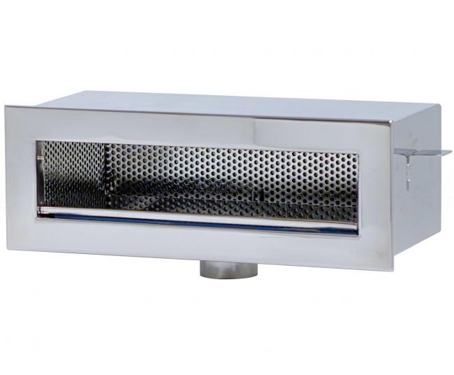 Skimmer z nerezovej ocele AISI 316L pre fóliové bazény. Nerezový skimmer do bazéna je zariadenie, ktoré slúži na čistenie vody v bazéne tým, že zbiera nečistoty, ako sú lístie, hmyz a iné drobné častice z hladiny vody. Je vyrobený z kvalitnej nerezovej ocele, ktorá zabezpečuje jeho dlhú životnosť a odolnosť voči korózii, čo je ideálne pre použitie v bazénoch. Nerezové skimmery sú obľúbené pre svoju odolnosť a elegantný vzhľad, ktorý sa hodí do moderných bazénov. Bez horného veka. Vkladací nerezový kôš súčasťou rámčeka.