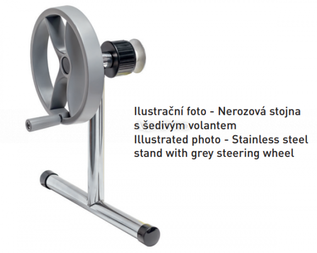 Nový design volantu v šedom prevedení pre nerezové stojany navíjacích zariadení.