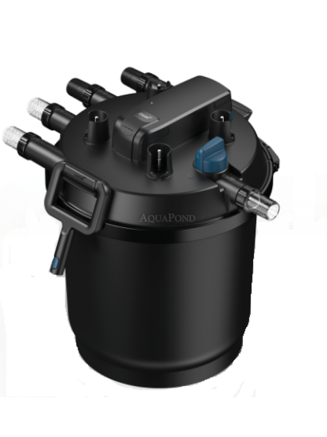 Tlakový filter FiltoClear 60000 s integrovanou 84 Wattovou UV lampou. Rýchlo a efektívne zaručuje pôžitok z čistej vody v jazierku. Znečistená voda z jazierka je čerpaná do tesne uzavretého systému - tlakovej nádoby. Môže byť úplne zapustený do zeme alebo môže byť umiestnený nad vodopádom.Filter má pohodlné čistenie bez nutnosti otvárať filter vďaka patentovanej Easy-Clean-Technology. Filter sa dá ľahko zamaskovať pri jazierku zakopaním do zeme a zakrytím FiltoCap stone grey. Filter je ideálny pre napájanie menších potôčikov, kaskád a vodopádov. Pri čistení fitlra sa hubky vyžmýkajú pomocou rukoväte na vrchu filtra, prepnutím Easy-Clean ventilu pretekajúca voda vypláchne nečistoty von z filtra. Obsahuje jednoduché monitorovanie prietoku vody, zanesenia filtra a činnosti UVC. Kompaktná veľkosť, ktorá poskytuje vysoký výkon - skvelé riešenie pre jazierka s obmedzeným priestorom. Vyrobené z vysoko kvalitného a odolného materiálu.