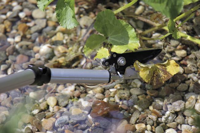 Oase FlexiCut 2 in 1 nožnice pre záhradné jazierka 2 v 1 - odstrihne stonku a súčasne ju podrží. Hlavica nožníc zabraňuje prerezaniu jazierkovej fólie. Rastlinu vyberiete hned z jazierka.