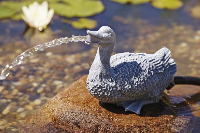 Oase Kačica - chrliaca vodu. Doplňujúce okysličovanie záhradného jazierka. Vyrobené z umelej hmoty odolávajúcej vonkajším vplyvom.