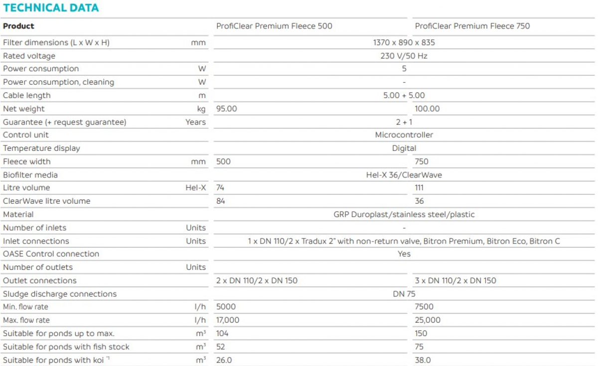 Krištáľovo čistá voda a inšpirujúca hĺbka viditeľnosti v koi jazierku: To je v ProfiClear Premium Fleece 750 zabezpečené vysoko účinnou kombináciou mechanickej hĺbkovej filtrácie a veľkorysej biológie filtra. Po prvé, rúno odstráni z vody najmenšie oblaky a čiastočky nečistôt. Baktérie vo filtračnom médiu Hel-X a integrované bloky Clear Wave sa potom postarajú o jeho čírosť. Tento fleecový filter udržuje koi jazierka až do veľkosti 38 000 l s prietokom až 25 000 l/h. Tento silný výkon možno voliteľne dodatočne namontovať na existujúce systémy. Tento filter je kompatibilný s modulmi série ProfiClear L. A je to inteligentné: Digitálne ovládanie a monitorovanie teploty vody a spotreby rúna je možné rýchlo a jednoducho vďaka prepojeniu s riadiacim systémom OASE.