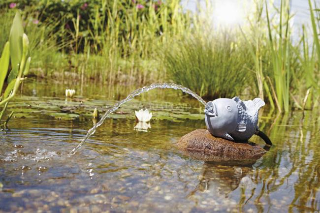 Oase Ryba - chrliaca vodu. Doplňujúce okysličovanie záhradného jazierka. Vyrobené z umelej hmoty odolávajúcej vonkajším vplyvom.