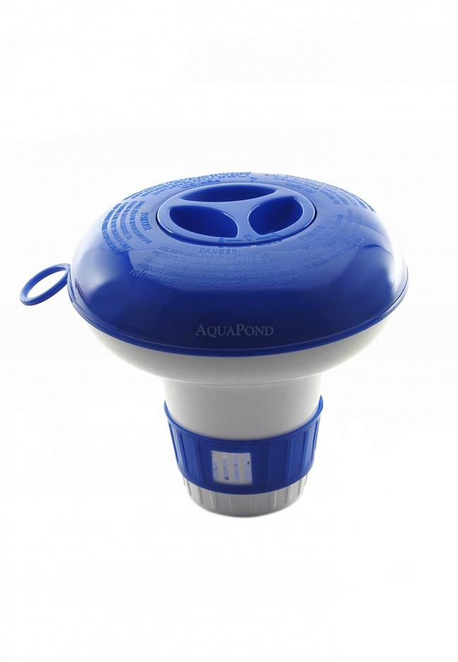 Dávkovač na tablety pomalyrozpustného chlóru. V spodnej časti je regulačný krúžok na úpravu množstva dávkovaného chlóru.