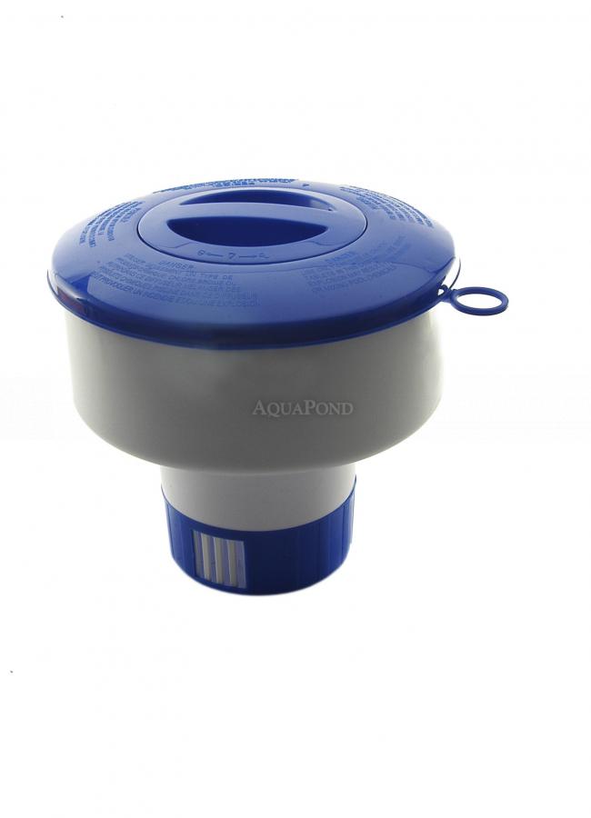 Dávkovač na tablety pomalyrozpustného chlóru. V spodnej časti je regulačný krúžok na úpravu množstva dávkovaného chlóru.