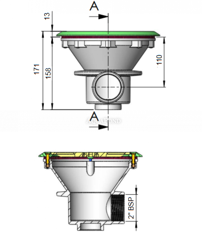 Bazénová výpusť je určená pre fóliové bazény. Je vyrobená z bieleho ABS plastu odolného voči UV žiareniu s mriežkou pripevnenou k prírube. Mriežka a príruba je upevnená pomocov šróbov s mosadznými závitmi, čo predlžuje životnosť a zvyšuje pevnosť tesniacich dielov. Najčastejšie sa používa pre betónové bazény s vnútornou fóliou, prípadne dá sa použiť aj pre predvyrobené bazény, do ktorých je potrebné vyvŕtať otvory pre šróby.