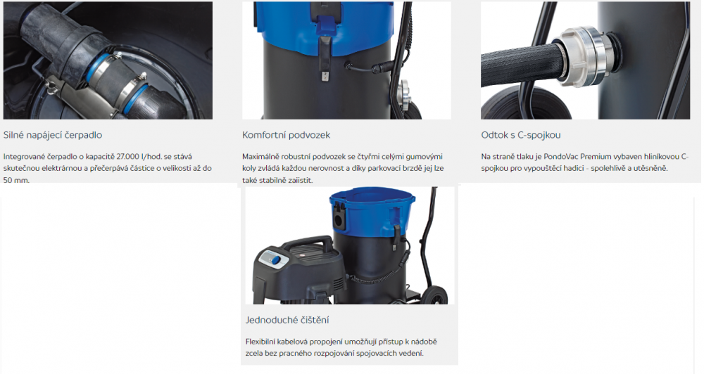 Profesionálny vysávač pre čistenie záhradných jazierok, bazénov, kúpacích jazierok, alebo iné použitie v priemyselnej oblasti. Pomocou ovládacieho panela na vysávači možné manuálne riadiť turbínu a odpadové čerpadlo. Ľahká manipulácia vďaka robustnému podvozku so štzrmi pogumovanými kolieskami a parkovacou brzdou. Inovatívny a spoľahlivý produkt vyrobený v Nemecku.