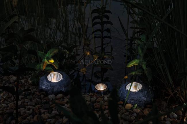 Dekoratívne jazierkové svetlo Pontec PondoStar LED Rocklight Set 3 vhodné na osvetlenie záhradných rastlín, jazierka, vodopádov. Žiarovky majú rám v tvaru skaly. Skaly sú vyrobené z trvanlivého materiálu odolnému počasiu.
