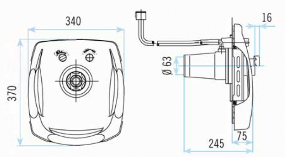 • Rozmery čela protiprúdu ( v x š x h): 370 x 340 x 75 mm