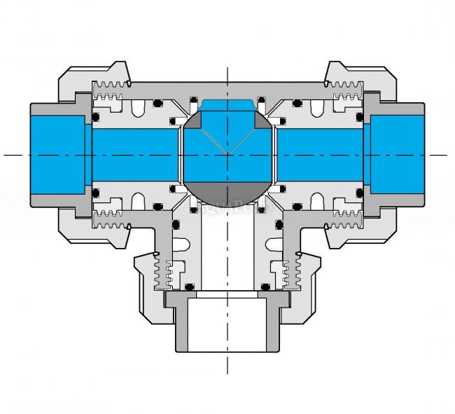 • PVC Guľový trojcestný ventil 40 mm T