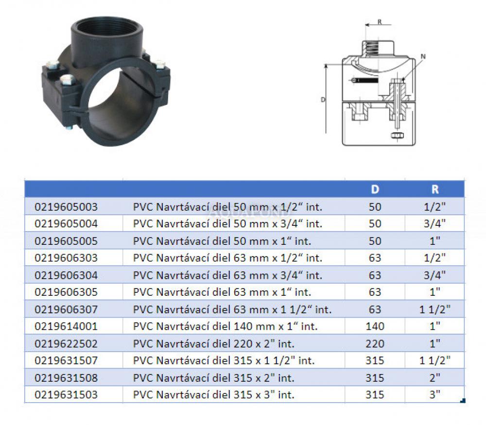 PVC tvarovka - Navrtávací diel 315 mm x 1 1/2“ int., DN=315 mm