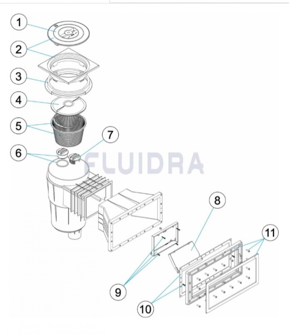 Náhradné diely pre skimmer 17,5 l so širokým hrdlom a štvorcovým vekom - farba svetlo šedý (RAL7004)