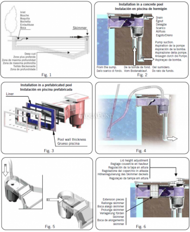 Skimmer (hladinový zberač nečistôt) slúži k odvodu znečistenej bazénovej vody do filtrácie. Vhodné pre fóliové alebo prefabrikované bazény. Vyrobený z odolného ABS plastu. Tento materiál nepodlieha zmenám v dôsledku vystavenia chemickým ani atmosferickým vplyvom. Typ skimmera sa určí podľa konštrukcie bazéna, obsahuje tesnenie s prírubou, vďaka ktorému môžete otvor v bazénovom telese alebo fólii zatesniť. Odporúčame inštalovať 1 skimmer na 25 m2 vodnej hladiny bazéna.