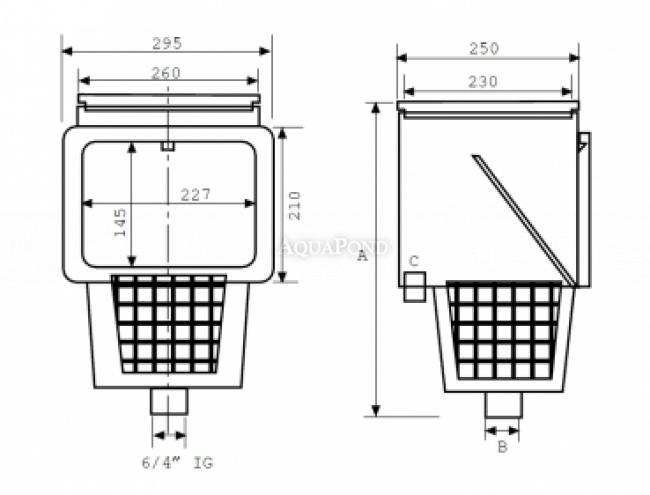 Skimmer je osadený vnútornou plávajúcou jednotkou na reguláciu prietoku vody tak, aby nedochádzalo k zavzdušneniu sacieho čerpadla. V spodnej časti skimmera je odnímateľný košík, ktorý zachytáva veľké nečistoty a malé predmety, čím zabráni ich priechodu do bazénovej filtrácie.