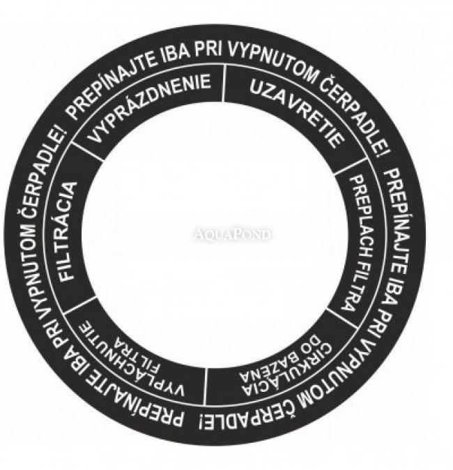 Samolepiaci popis polôh šesťcestného ventilu ( Midas, Praher, Speck, ). S vyznačením jednotlivých funkcií pre jednoduchú obsluhu ventilu.