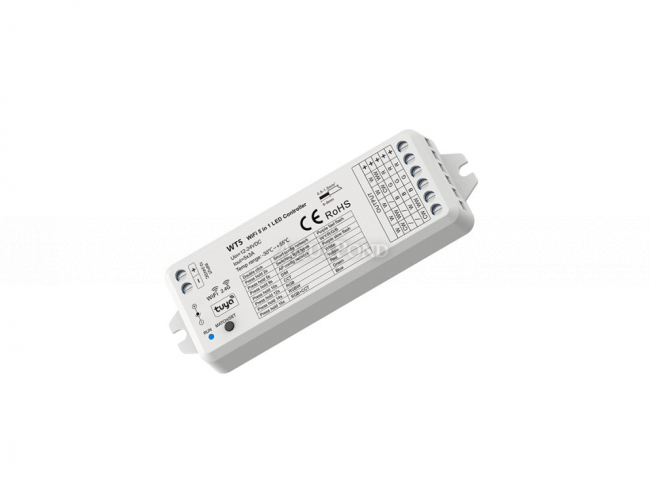 SMART WiFi prijímač pre LED pásky s výstupom 12-24VDC, 5 * 3A je určený pre všetky druhy pásikov (RGB, jednokanálové, CCT - zmena farebnej teploty, RGBW, RGB + CCT).