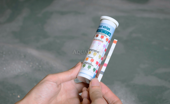 Ponorte testovací pásik na 5 sekúnd do vody a pod vodou ním zatraste. Po vybratí z vody priložte pásik k stupnici. Počkajte 10 sekúnd a porovnajte namerané hodnoty s farebnou škálou na obale.
