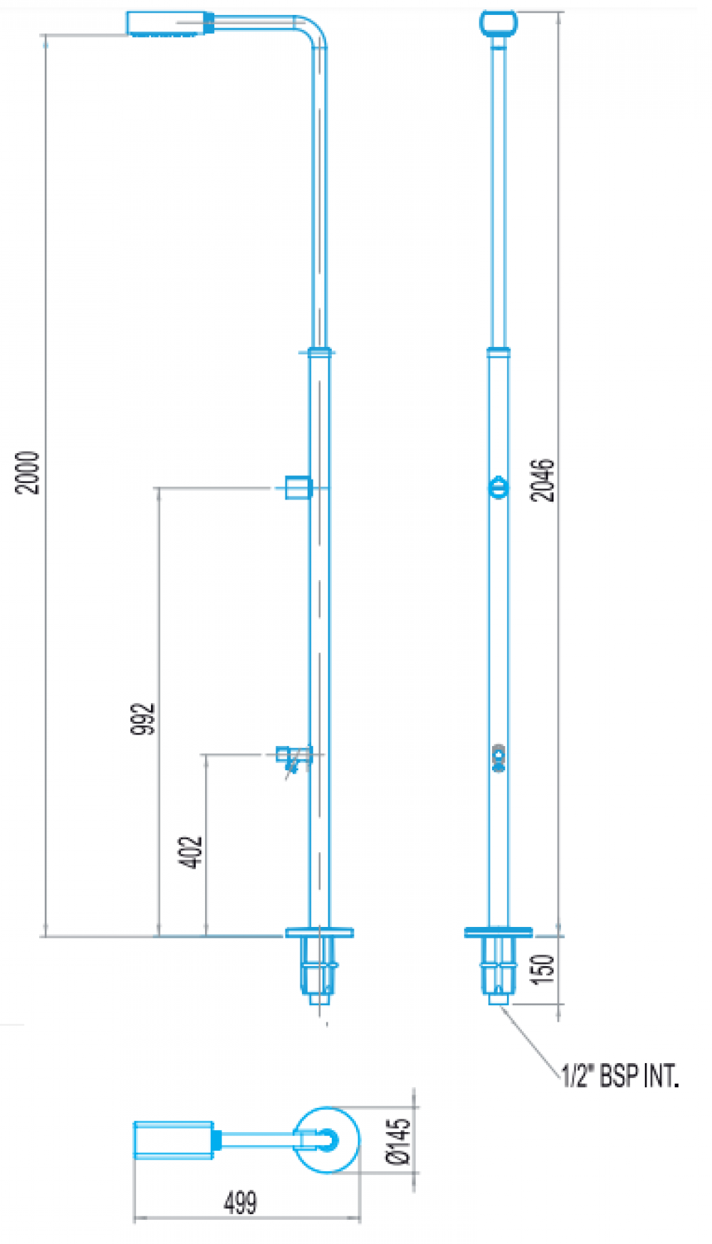 • Sprcha Angel AISI 304 s 1 kropítkom, 1 kohútikom a 1 kohútikom na oplach nôh