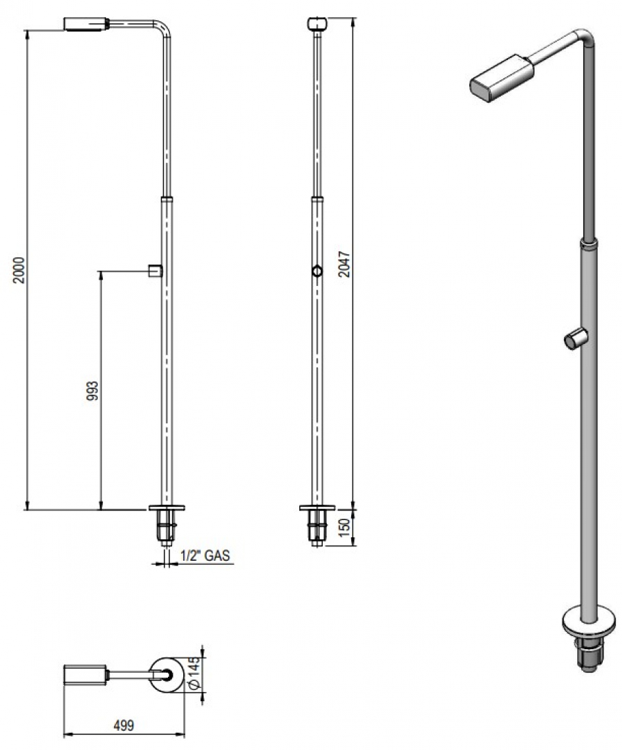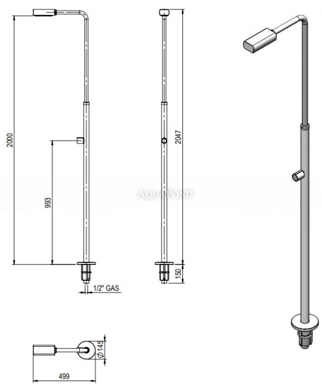 Sprcha z leštenej nehrdzavejúcej ocele AISI-304 (Ø 43 mm) s 1 chrómovou sprchovou hlavicou a 1 prietokovým otváracím ventilom. Prečítajte si viac