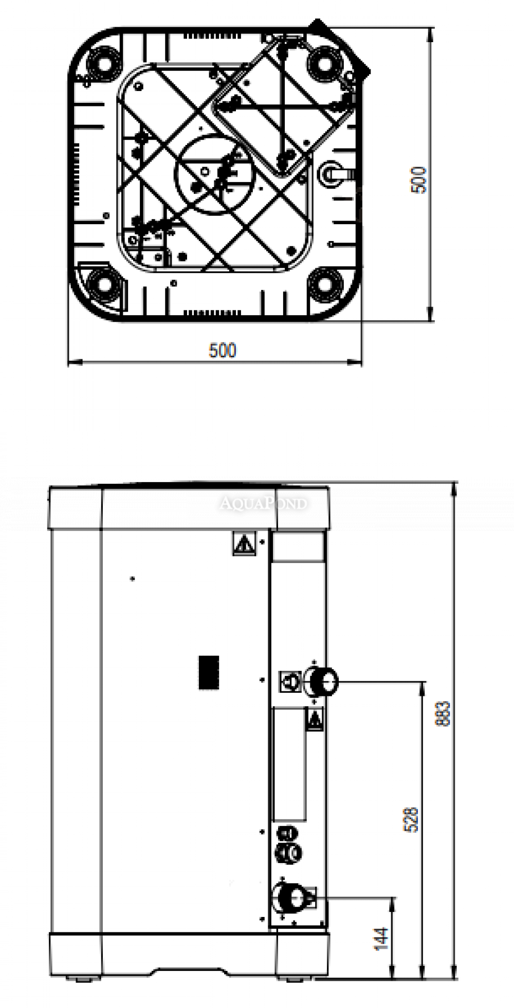 • Čisté rozmery jednotky (š/d/v): 500 x 500 x 883 mm