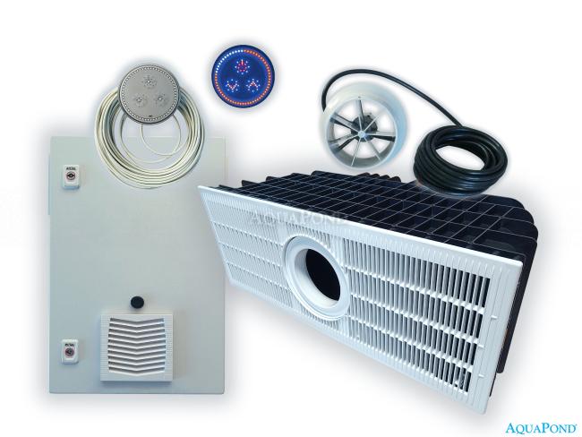 Polypropylénová inštalačná krabica je vhodná pre montáž do fóliových aj GRP bazénov. LED osvetlenie je k dispozícii aj ako príslušenstvo a montuje sa na odtokovú pomôcku. Tento LED svetelný krúžok obmýva vodu farebnými svetelnými displejmi voľne voliteľných farieb a robí z kúpania v bazéne veľmi zvláštny zážitok.