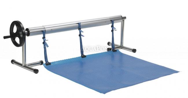 Kompletné navíjacie zariadenie určené na pohodlné navíjanie a odvíjanie solárnej bublinkovej fólie na hladine bazénu. Stojany sú vyrobené z leštenej nerezovej ocele, a teleskopická navíjacia tyč je v prevedení eloxovaného hliníku. Zariadenie sa umiestňuje na kraj bazéna. Uchytenie solárnej fólie a navíjacej tyče sa vykonáva pomocou pásikov a príchytiek (súčasť dodávky).