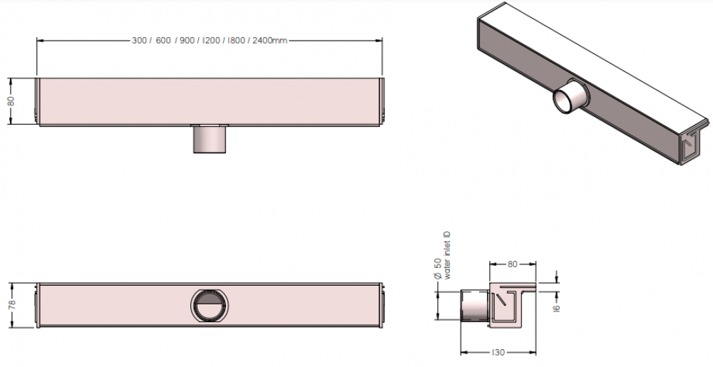 • Dostupné v 4 veľkostiach: 300, 600, 900 a 1200 mm