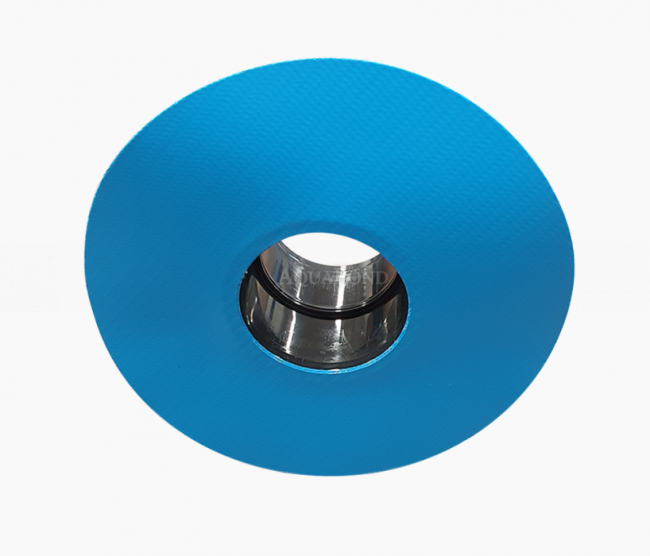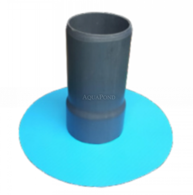 Dvojdielny odtok prelivového žľabu D75, so špeciálne vulkanizovanou 1,5mm ťažkou fóliou. Jeden z dielov je púzdro D75, ktoré sa