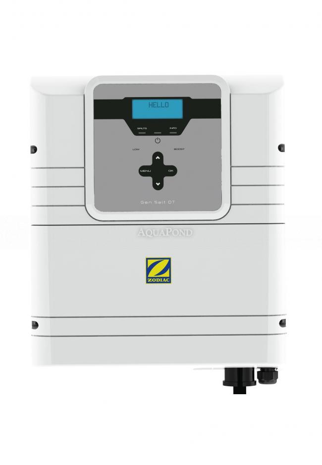 GENSALT OT je systém, ktorý sám o sebe dokáže percentuálne vytvárať chlór (elektrolýza soli) rovnako tak ako EI2 či EI2 Expert. Jednotku GENSALT OT možné rozšíriť o prídavný modul "pH Link". Slaná voda v bazéne má priaznivé účinky na pokožku a je vysoko odolná voči mikroorganizmom. Používaním úpravy vody pomocou rozkladu soli je možné ušetriť náklady na bazénovú chémiu a čas potrebný na jej úpravu. Solinátor rozkladá soľ rozpustenú v bazéne a pomocou elektród z nej uvoľňuje plynný chlór, ktorý vodu dezinfikuje. Pre správne fungovanie systému je najskôr potrebné do bazéna pridať soľ v množstve 5 kg na 1 m3 vody. Zodiac Gensalt na nedostatočné i nadmerné množstvo soli v bazéne upozornia kontrolkou. Ovládanie výkonu je ručné a nastavuje sa od 10 do 100%. Zariadenie je navyše vybavené funkciou "Boost" pre okamžité zvýšenie produkcie chlóru po dobu 24 hodín a funkciou "Low" pre zníženie produkcie na 10%, ak bazén chvíľu nepoužívate. Napojenie pomocou špeciálneho systému "quick fix", ktoré zvládnete za 15 min.